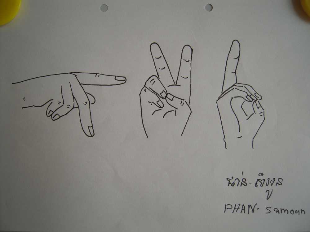 (無料配布:カンボジアポストカード、カンボジア式指文字、カンボジア語で作った日本の50音)